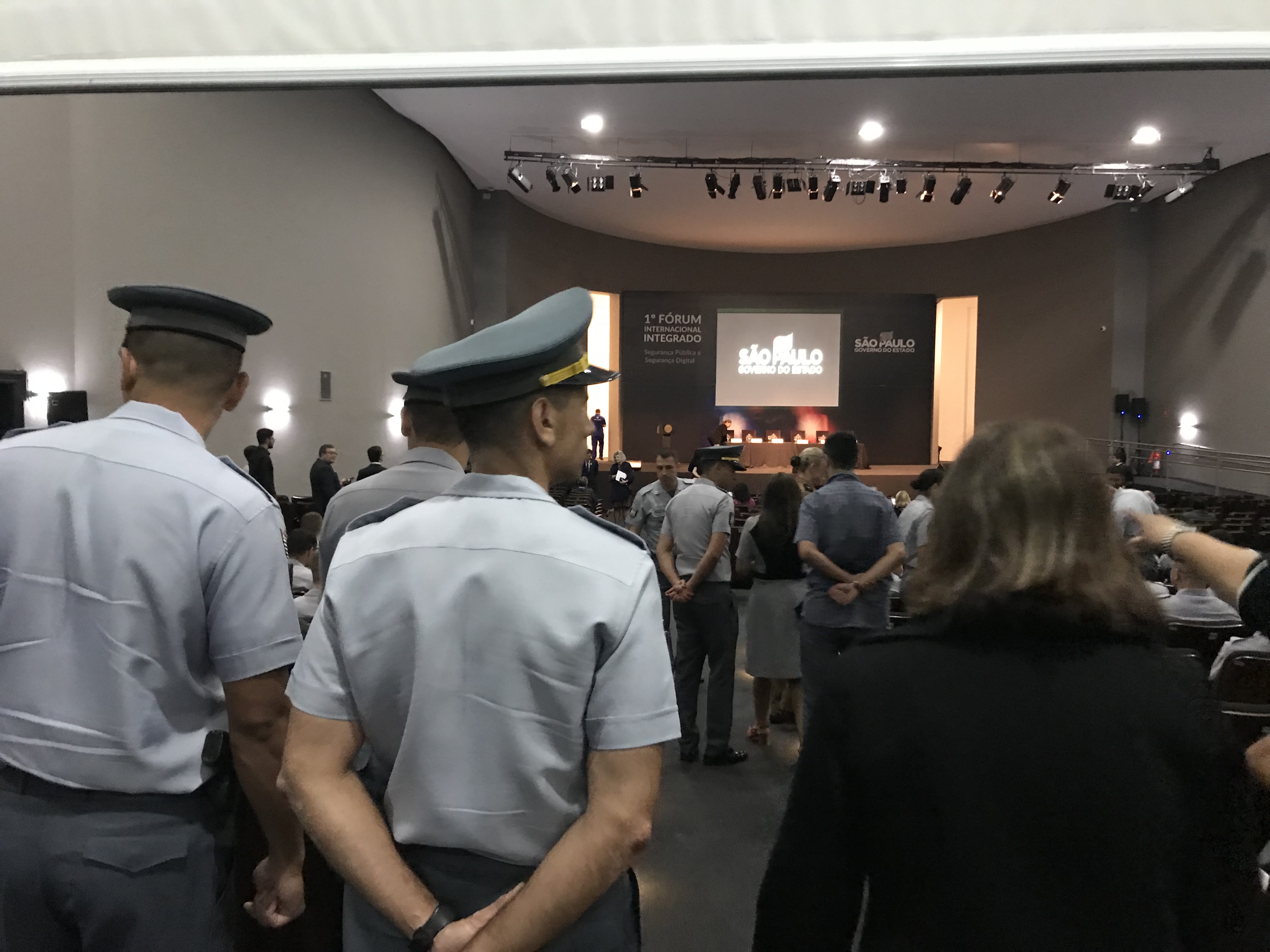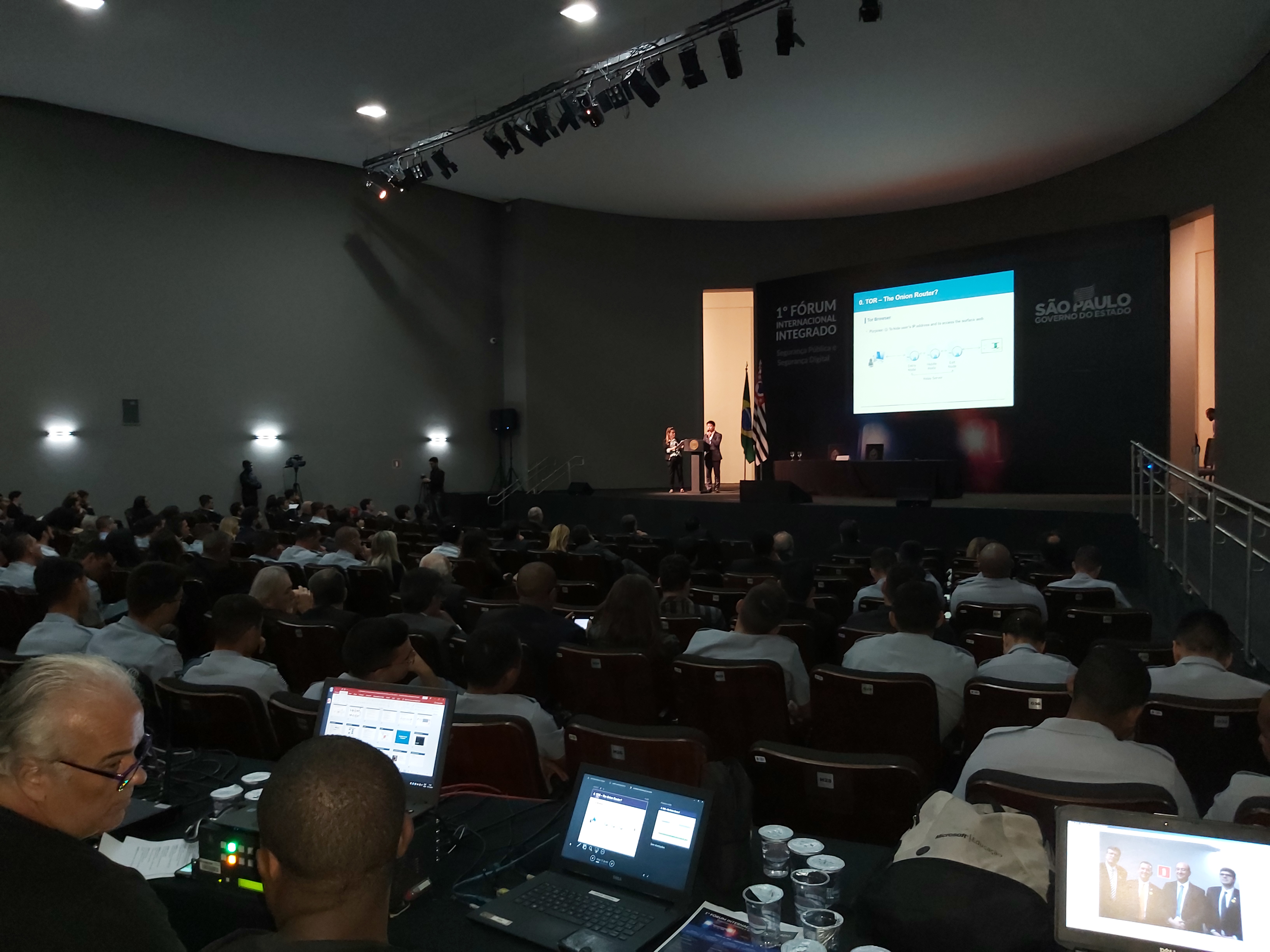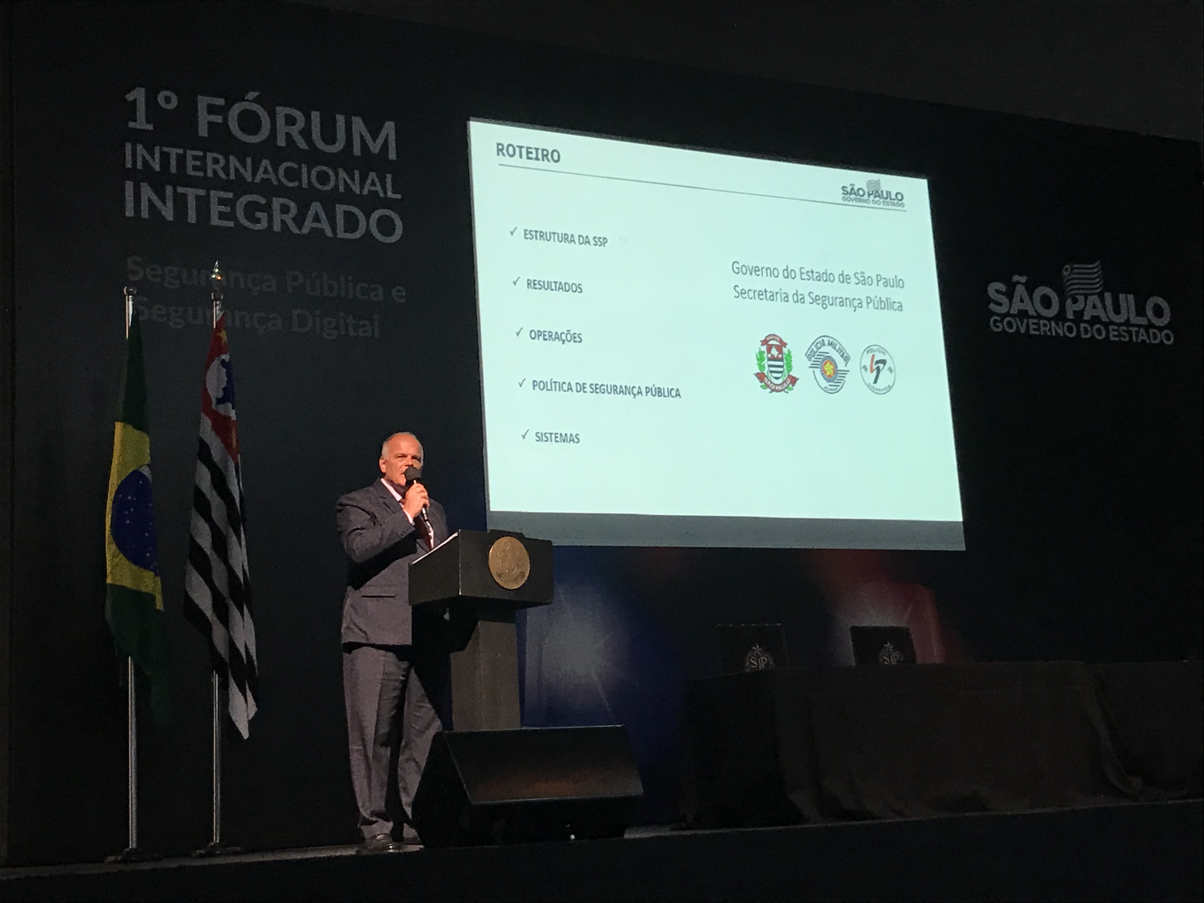 1° Fórum Internacional Integrado - Segurança Pública e Segurança Digital no Palácio do Estado de São Paulo. Um inspetor da Polícia Nacional da Coreia veio ao Brasil para apresentar a forensic digital do país no fórum. Agradeço à Associação do Ministério Público, à Secretaria da Segurança Pública e à Secretaria de Relações Internacionais do Estado de São Paulo pela organização do evento tão importante. Espero que o evento contribua para fortalecer cooperações de investigação científica entre nações e diminuir crimilidade mundial.