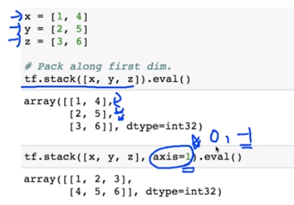 - axis = 0 / axis = 1에 따라 stack을 쌓는 방식이 달라짐