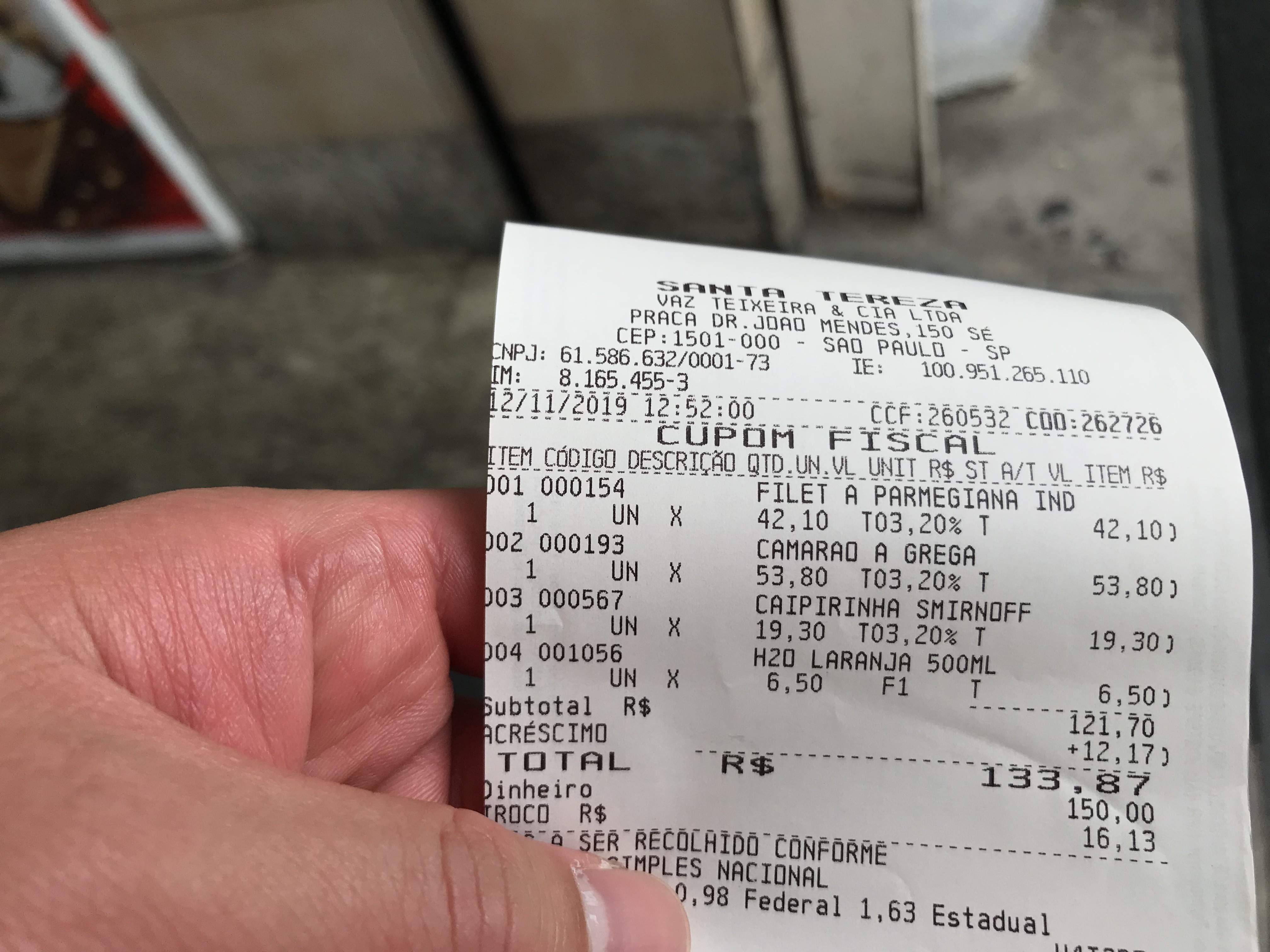 총 133.87헤알 (한화 약 4만원 상당)