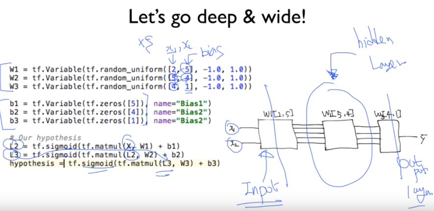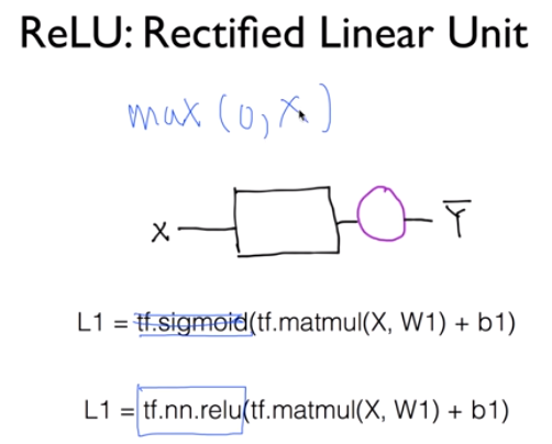 텐서플로우 적용시에는 sigmoid 함수 대신 relu 함수 사용