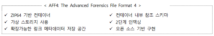 - 주제 : AFF4 기반의 개방형 논리적 이미지 컨테이너