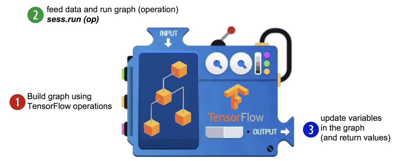- '데이터 플로우 그래프(data flow graphs)'를 이용한 '수치 계산(numerical computation)'을 위한 오픈소스 라이브러리