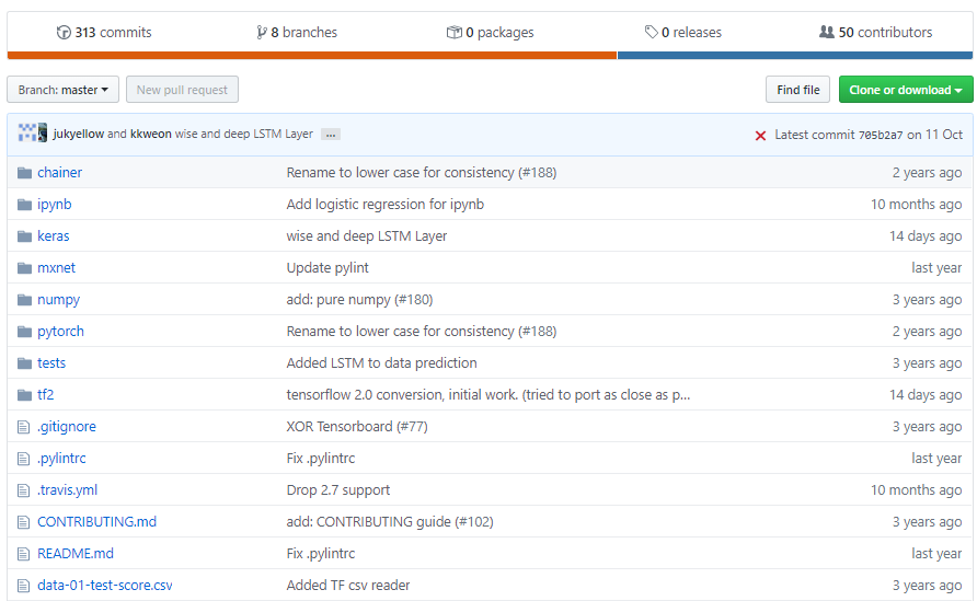 - https://github.com/hunkim/DeepLearningZeroToAll/ (2017년경 다수 commit, 최근에는 활동이 적음)