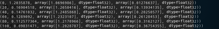 (1000, 0.0014946823, array([1.0447946], dtype=float32), array([-0.10182849], dtype=float32))