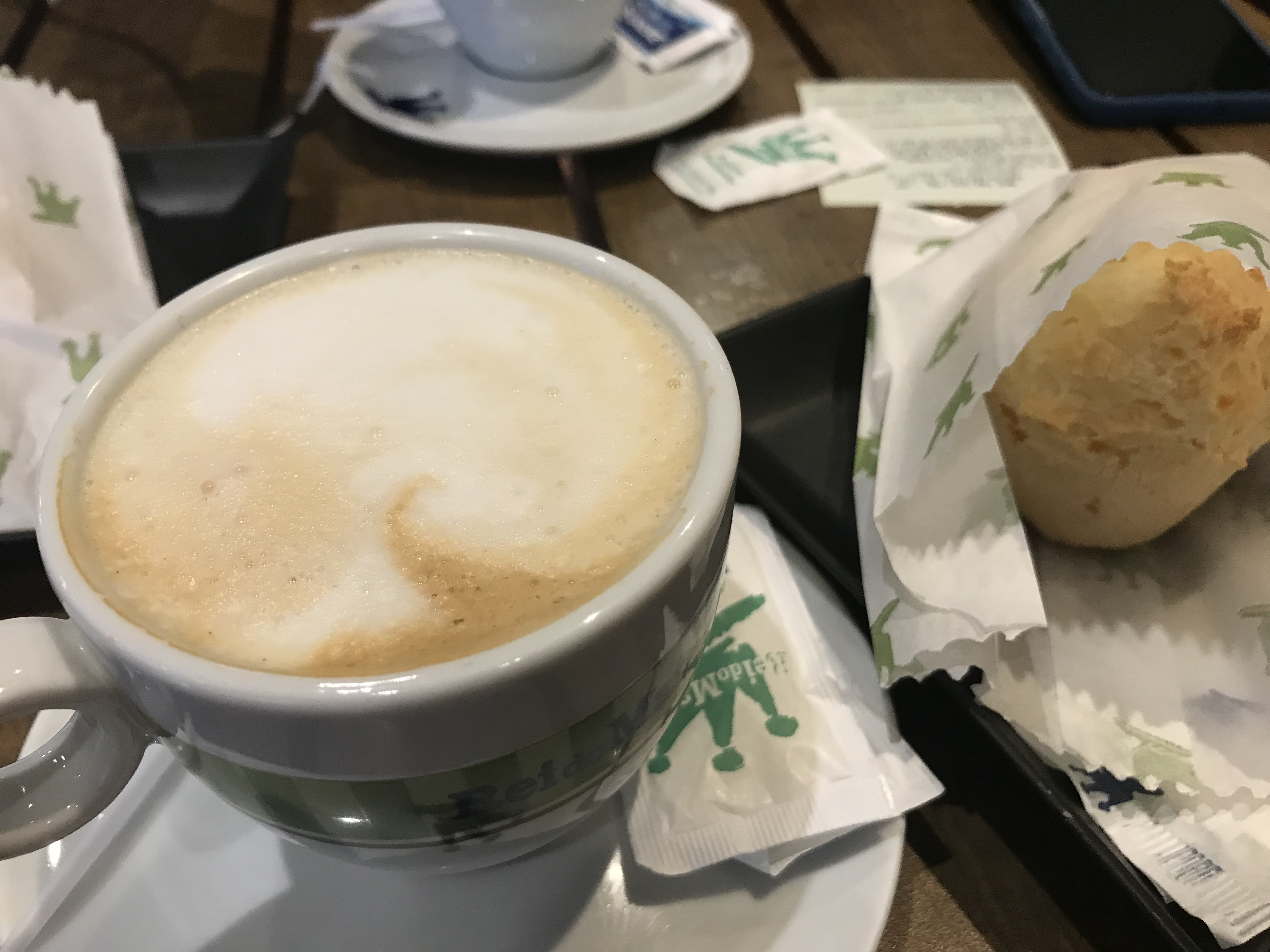 파울리스타 거리의 Rei do Mate에 들러, 브라질에서 많이 먹는 치즈빵과 라떼를 한잔 주문했다.