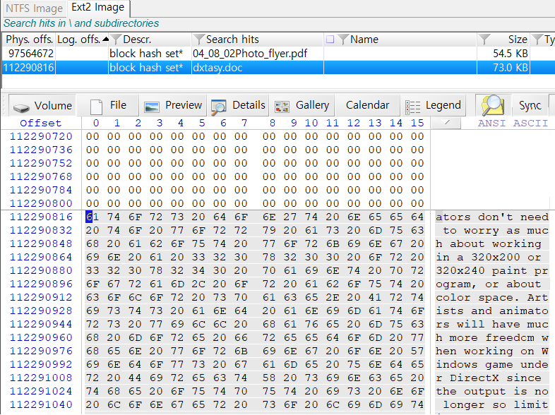 만들어진 블록 해시와 동일한 블록을 Ext2 Image.e01에서 검색하자