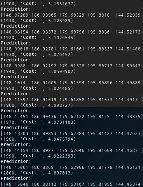 print (step, sess.run(cost), sess.run(W), sess.run(b))